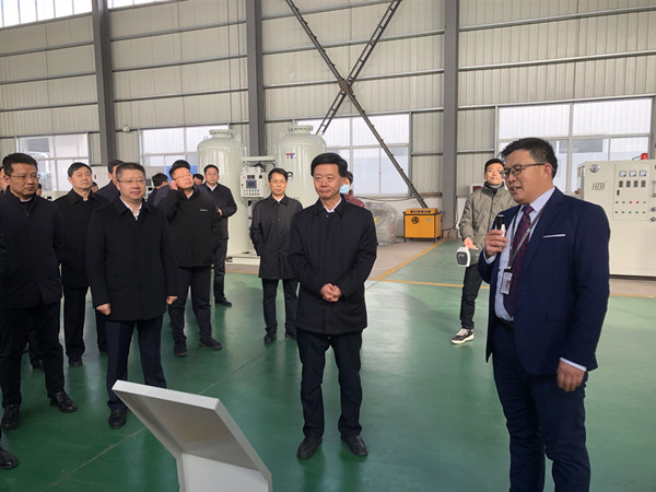 在參觀過程中,總經(jīng)理張亮先生就公司制氧機,制氮機產品、性能、發(fā)展及未來規(guī)劃等多方面向考察組進行了系統(tǒng)而全面的介紹。